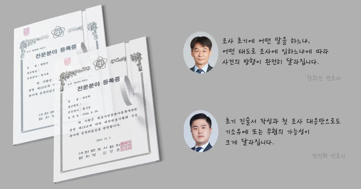 🔴 긴급: 경찰 조사 48시간 전이라면 지금 즉시 전화하세요. 조사 전 변호사 조력이 결과를 완전히 바꿉니다. 특히 공소 제기 전 합의가 불기소 처분 가능성을 높입니다.