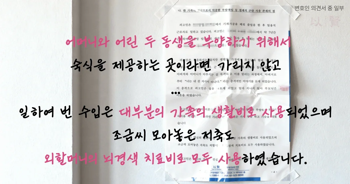 "가족이 있습니다"가 아니라 "이 사람이 없으면 가족 3명이 당장 굶습니다"를 증명한 겁니다.