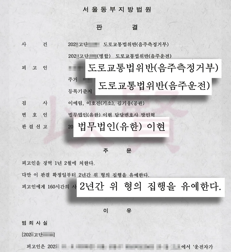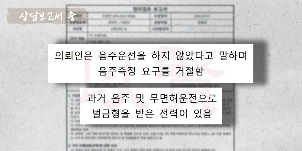 결국 법원은 도로교통상 위험이 크지 않았다는 점을 인정하고, 피해가 발생하지 않았던 점을 고려해 음주측정거부 감형을 허용했습니다. 의뢰인은 걱정했던 것보다 훨씬 가벼운 처벌로 사건을 마무리할 수 있었습니다.