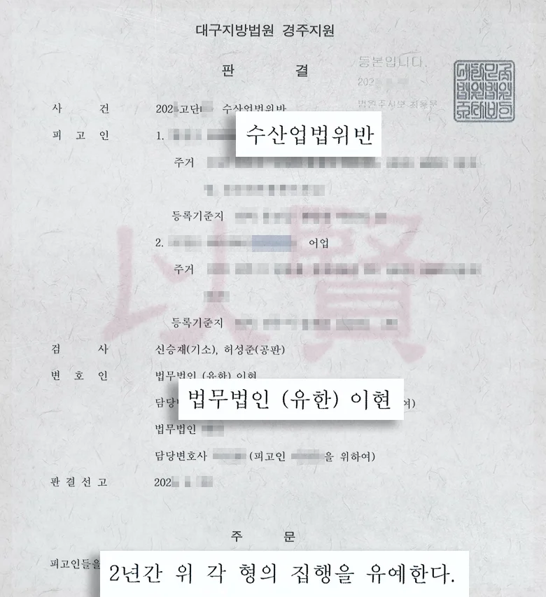 A 씨는 졸지에 전 재산을 투자한 배도 잃고, 전과자가 될 위기에 처했습니다. 수산업법 위반 혐의로 기소된 그는 1심 재판을 앞두고 다급히 저희 법무법인 이현을 찾아오셨습니다.