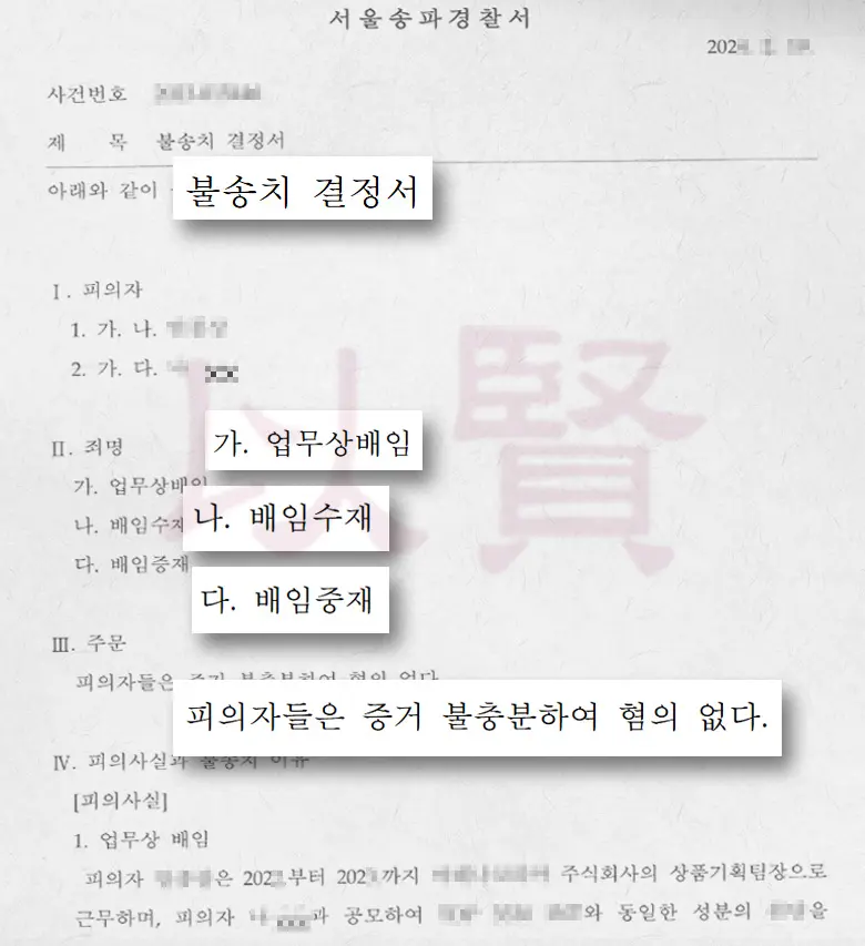 이러한 치밀한 대응의 결과, 수사기관은 수령한 금원이 단순한 차용금일 뿐 부정한 청탁의 대가라고 보기 부족하다고 판단하여 혐의없음(불송치) 결정을 내렸습니다.