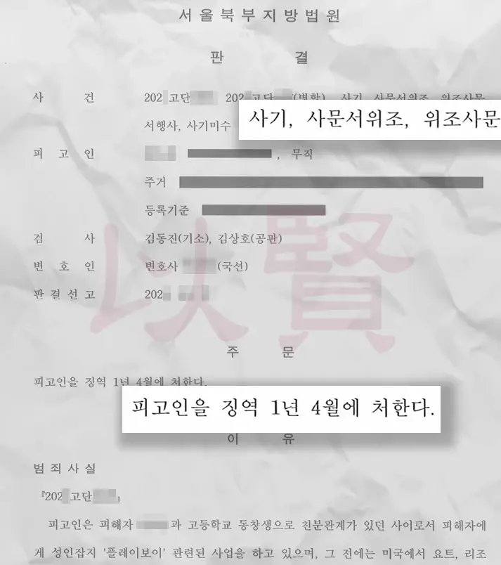 첫째, 형사 고소 결과 법원은 이현의 주장을 받아들여, B씨의 행위가 단순 채무 관계가 아닌 악의적인 사기 범죄임을 인정했습니다. 그 결과 서울북부지방법원은 B씨에게 징역 1년 4개월을 내렸습니다.