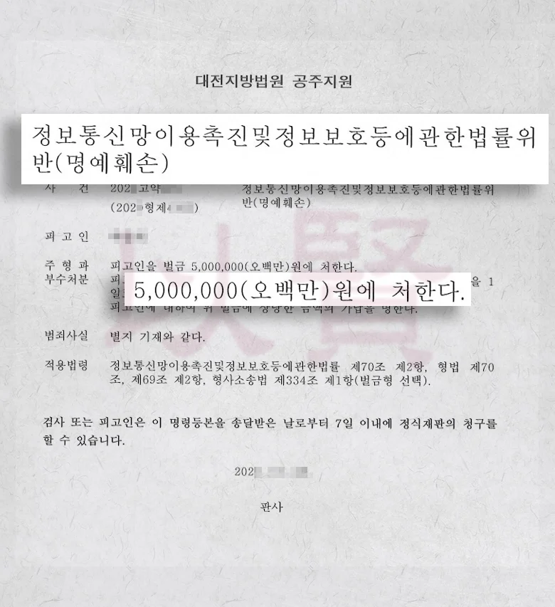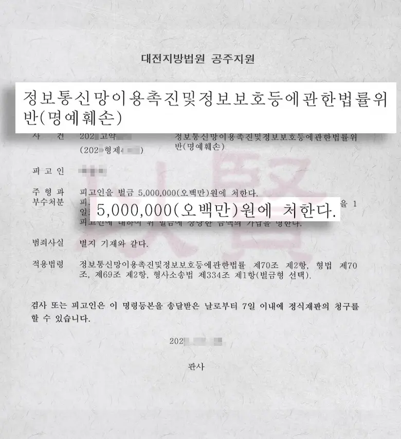 오늘 소개해 드릴 사건은 유명 무속인인 의뢰인 윤서우 님이 네이버 카페 댓글을 통해 악의적인 허위사실 유포 피해를 입었던 사례입니다. 저희와 함께 치밀하게 대응한 결과, 통상적인 사이버 명예훼손 사건보다 훨씬 높은 수준인 벌금 500만 원이라는 중형을 이끌어낼 수 있었습니다.