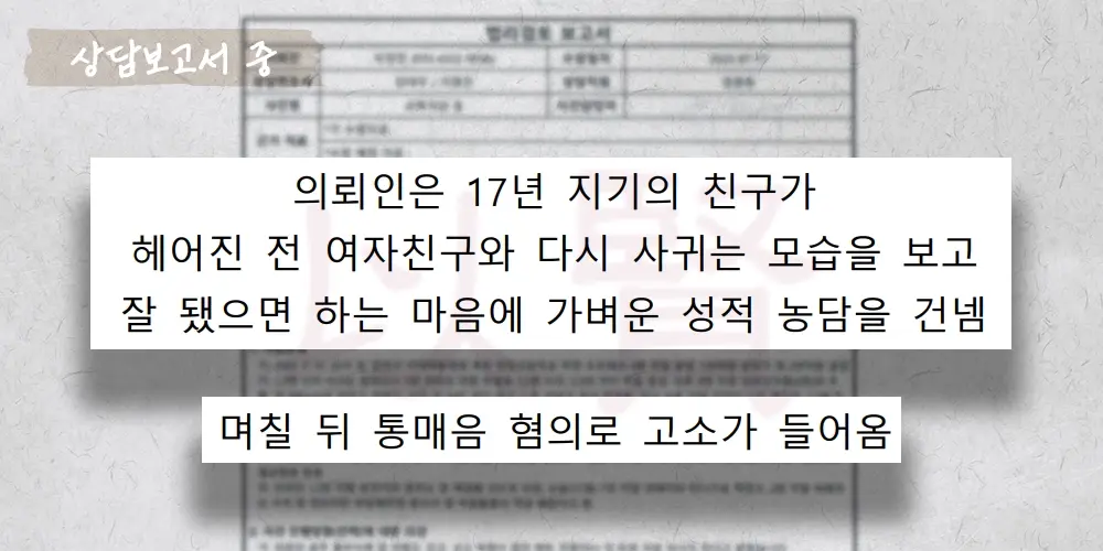 만약 A씨가 변호사 없이 진술했다면, “농담이긴 했지만 성적인 내용이긴 하죠” 같은 말 한마디로 기소유예나 벌금형을 받을 가능성도 충분했습니다.