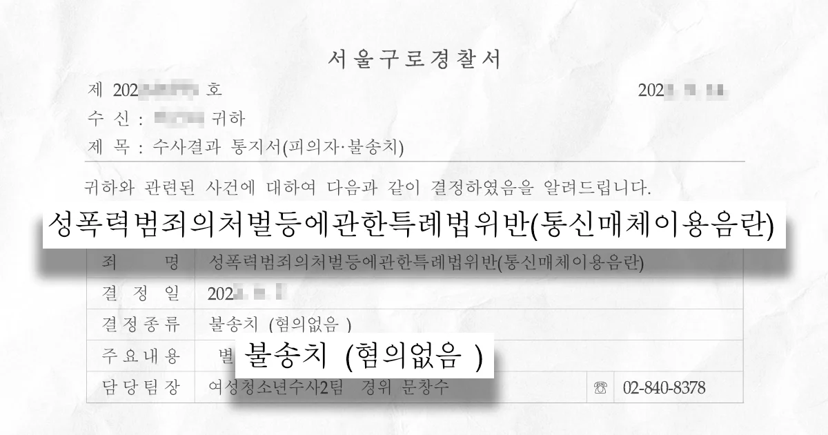 는 이유로 증거 불충분, 혐의없음(불송치) 결정을 내렸습니다.