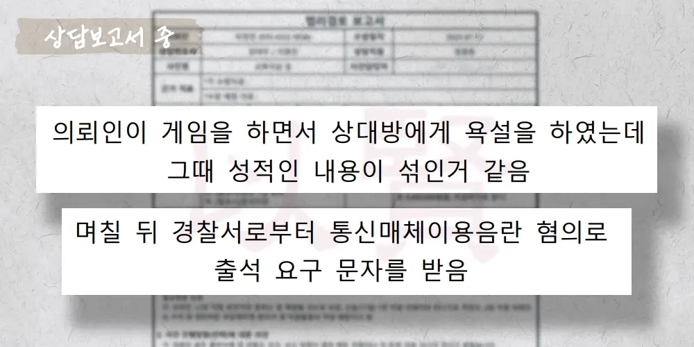 게임 중 욕설로 통신매체이용음란죄(통매음) 고소를 당해 당황하셨나요?