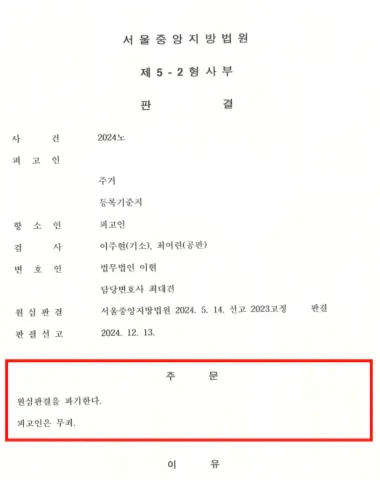 결과: 서울중앙지방법원 항소심 '원심판결 파기, 무죄 선고' A씨는 끈질긴 법리 싸움 끝에 전과자의 굴레에서 벗어날 수 있었습니다.