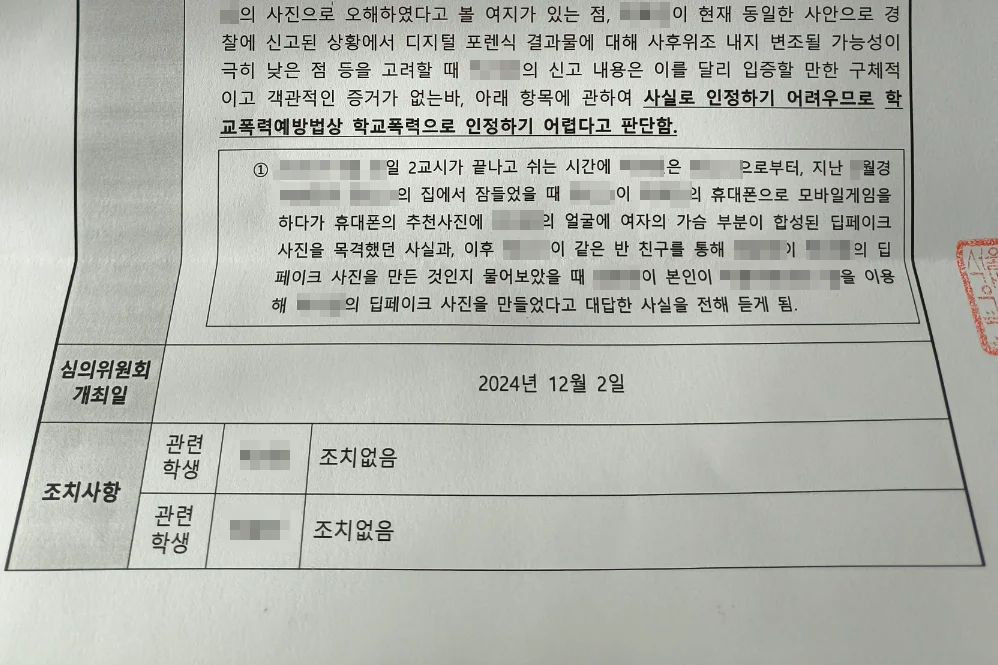 부모님의 심정: 딥페이크는 디지털 성범죄로 분류되어 처벌 수위가 매우 높기에, 자칫 아이의 인생에 '성범죄자' 낙인이 찍힐까 봐 극도의 공포를 느끼고 계셨습니다.