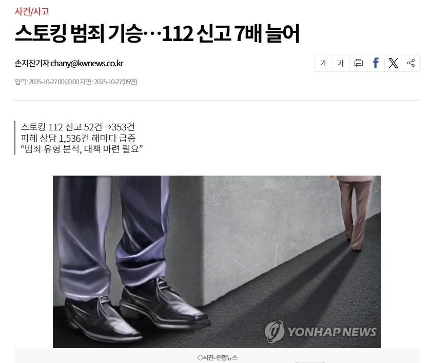스토킹 범죄에 대한 사회적 합의가 생기고 2024년 1월 12일, 법이 바뀌었습니다. 그리고 신고가 폭증했습니다.