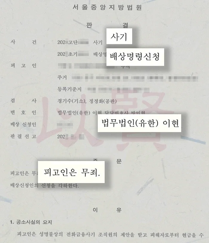 성공 사례 확인 : 보이스피싱 무죄 받아낸 결정적 증거